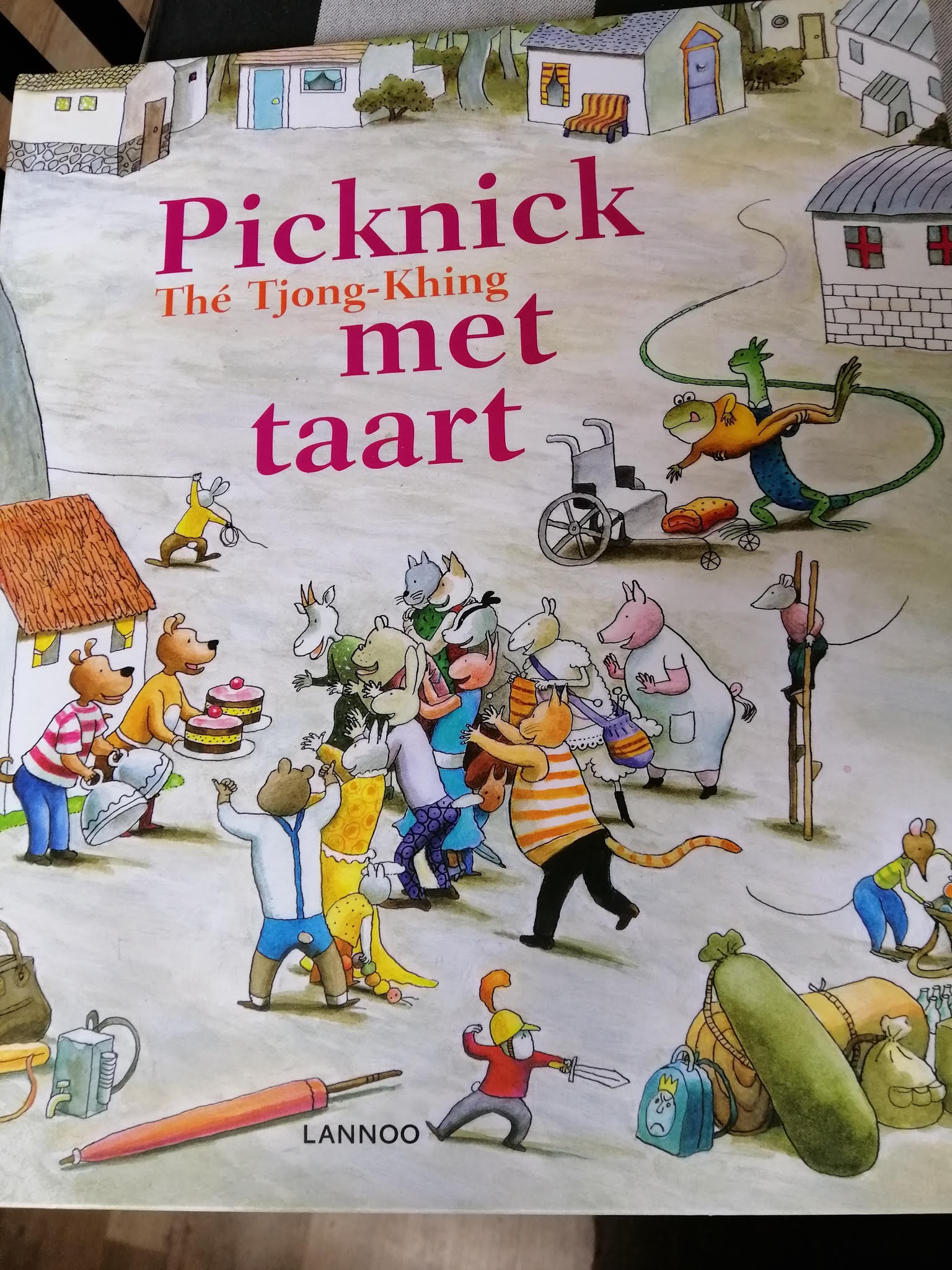 The second book drawn by The Tjong-King that came to our attention was a wordless picture book called ‘Picknick met taart’ or ‘Picnic with a cake’ in English. It was a summer period where the library together with some schools held a summer activity for parents and children who still needed some help in the Dutch language. Both my kids and I joined the program and there we were taught how to tell the story to the children, how to engage them in the book reading; by asking questions, asking them to draw their favorite character from the book, or by acting out the story together with them.